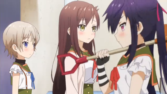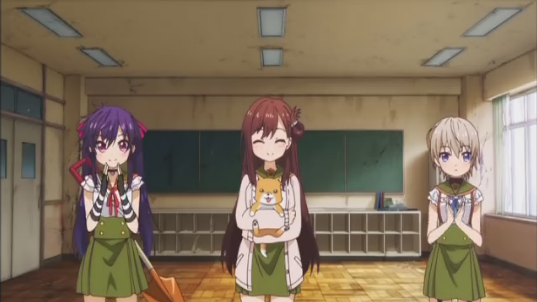 ・バリケードの向こうにいるアレは、恐らく緑色。制服の違いで考えるならば、緑色が危険か。根拠ない妄想で言うなら、アレに噛まれた人は緑色の制服に着替えて様子見、暫く経って症状がおかしくなったらバリケードの向こうに押しやってアレ化を待つとかなんとかしているのか?つまり最終話にはラストスタンド系アニメに?w